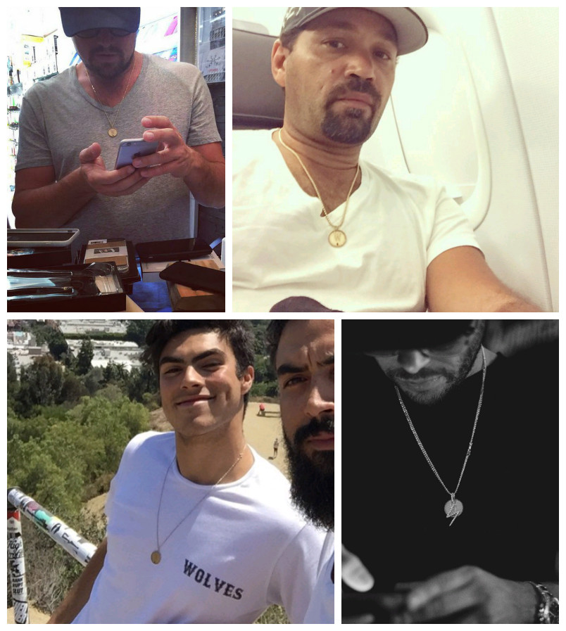 Так как, посмотрев внимательно фотографии друзей Леонардо, можно увидеть, что точно такие же кулоны, как у Лео носят его близкие друзья Винсент Лареска, Ричи Акива, крестник Лео - Милано, Лукас Хаас и т.д.