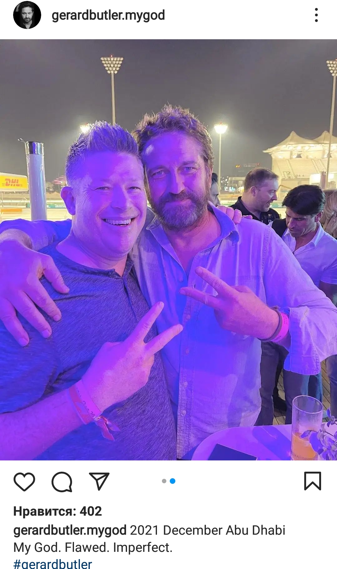 Джерард Батлер на гонках Формула-1 Гран-при Абу-Даби в округе Яс-Марина в Объединенных Арабских Эмиратах