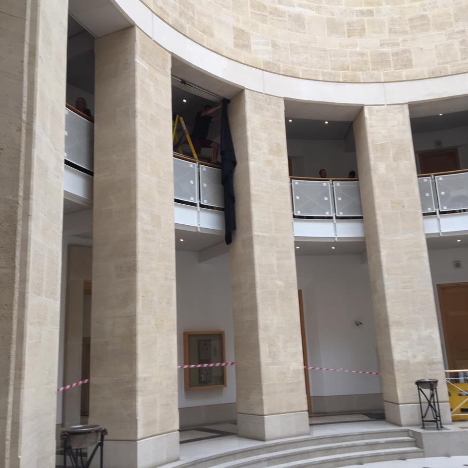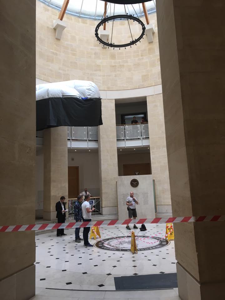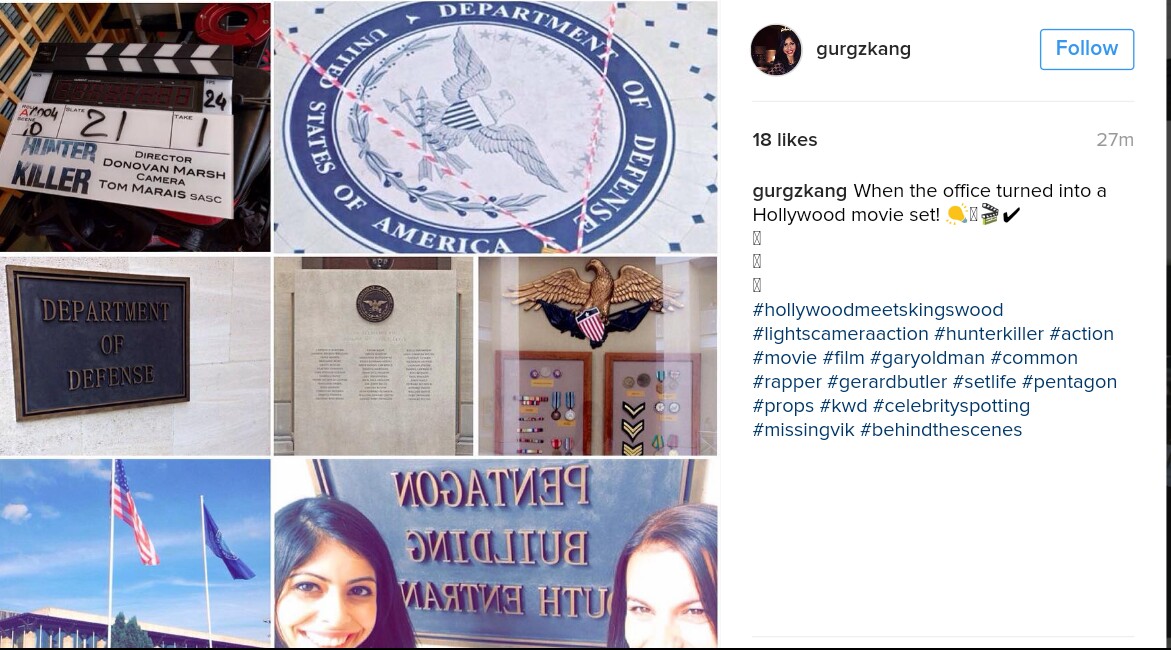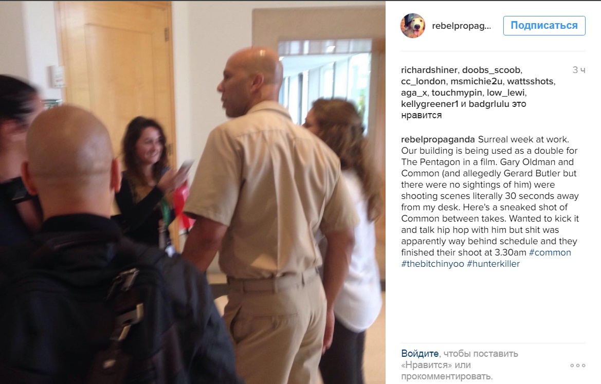 Нереальная неделя на работе. Наше здание используется в качестве двойника для Пентагона в фильме Гэри Олдман и Common (и якобы Джерарда Батлера, но не было никаких его появлений) были съемки сцены буквально через 30 секунд от моего стола. Вот делают фото Common между дублями. Хотел хлопнуть его и говорить хип-хоп с ним, но было по-видимому, отставание от графика, и они закончили снимать в 3:30 #common #thebitchinyoo #hunterkiller