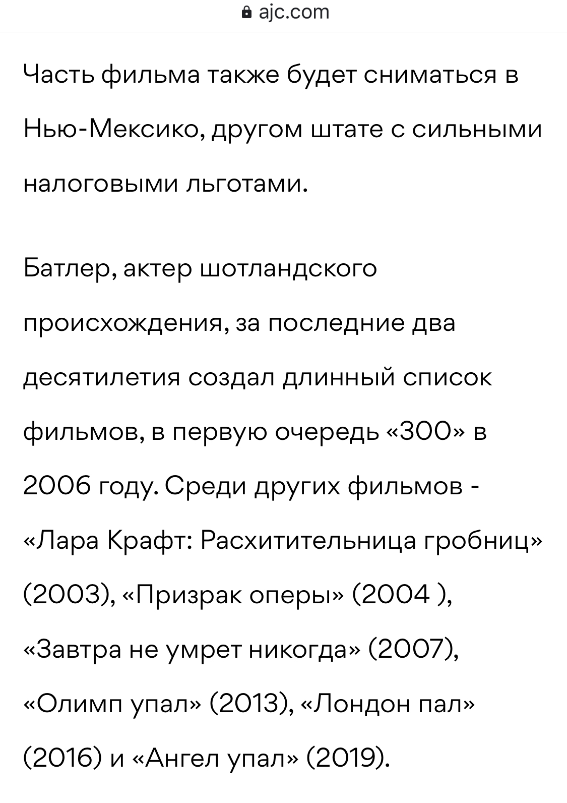 Фильм Эдмонтонского сценариста с Джерардом Батлером в главной роли стартует в октябре