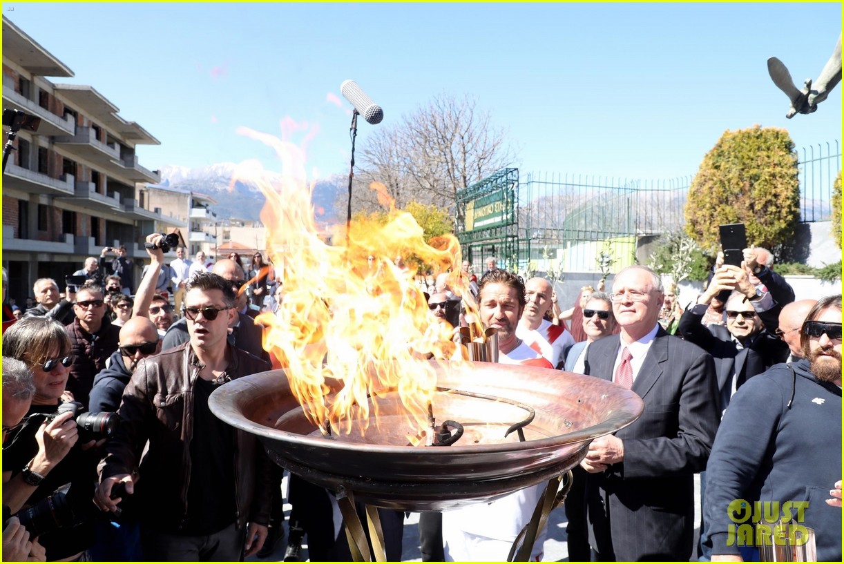 Джерард Батлер зажигает олимпийский факел во время соревнований в Спарте!