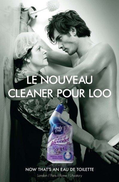 Реклама нового аромата средства для чистки унитазов Ambi Pur в стиле рекламы гламурного парфюма
