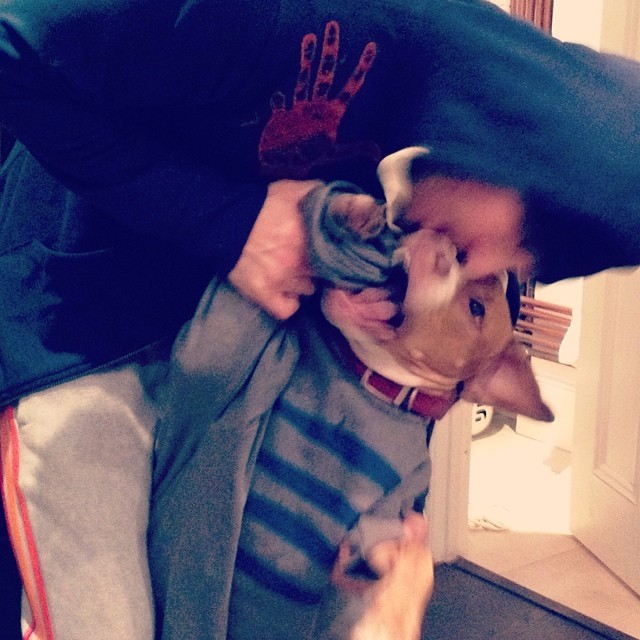 Пы.Сы. Во дурнина, бедного Касса в какую-то майку обрядил, и не похоже, что псинке это шибко нравится :D