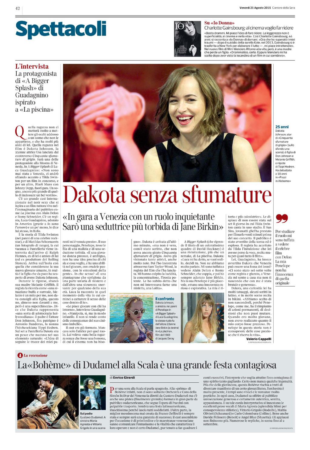 В новом интервью Дакота Джонсон, играющая Пенелопу в "Большом всплеске", обещает, что появится на Венецианском фесте с пугающей ролью: она будет еще более темной и загадочной соблазнительницей, чем Джейн Биркин в оригинальном фильме "Бассейн".