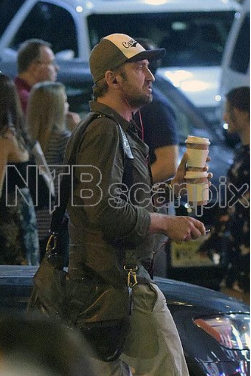 Gerard Butler carries coffee while arriving at Hamilton musical in New York City