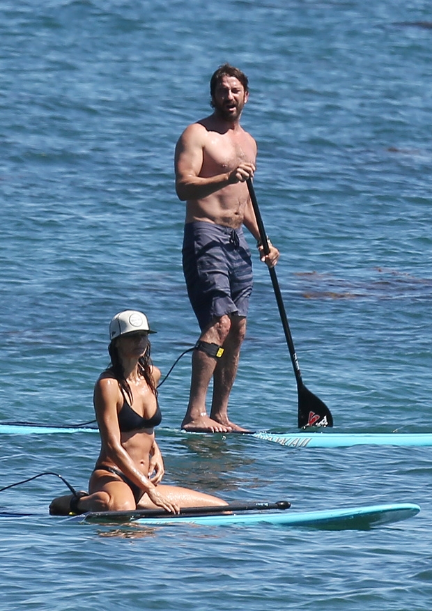 EXCLUSIVE: Gerard Butler and Morgan Brown back together as he takes her on the construction site of his new L.A home after a romantic breakfast. The former model was spotted giving some ideas about the place to the 46-year-old actor.