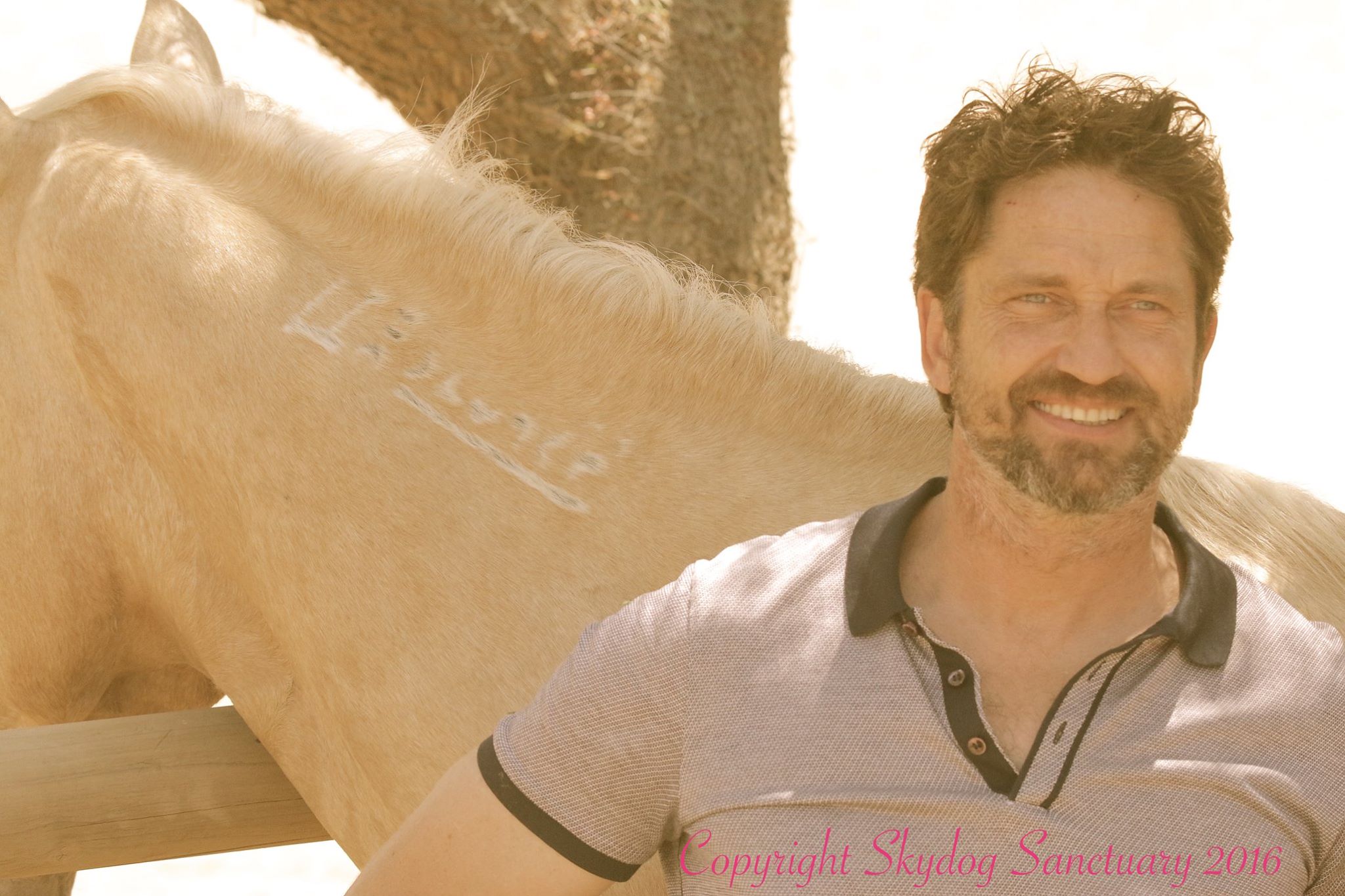 Without doubt the most handsome, charming, friendly, kind, funny AND gorgeous visitor that we have had here at Skydog Sanctuary recently. Mr Gerard Butler came to hang out with some of our mustangs in Malibu. Remarkably he is very comfortable around horses having ridden in a few of his movies and even ridden some of our wild ones on trail in Los Angeles. One of the biggest goals of our sanctuary is to raise awareness and educate people about these incredible horses so it means the world for us to have such supportive and generous friends.
