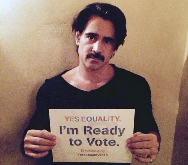 Старший брат Колина Фаррелла, Имон - гей Не в последнюю очередь по этой причине актер выступает за равенство ЛГБТ в своей стране. Он уже принимал участие в кампаниях против гомофобии - таких как "Stand Up! Don't Stand for Homophobic Bullying!" ("Вставай! Не давай спуску гомофобной травле!"). Колин дважды был шафером на свадьбе брата: сперва со своим партнером тот заключил брак в Канаде, а после того, как в Ирландии узаконили гражданские партнерства, пара сыграла свадьбу на родине, и Колин вновь на ней присутствовал. Теперь он поддержал кампанию с призывами отправиться на референдум и сказать "да" равенству.