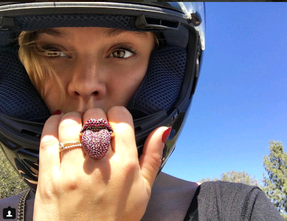 Неделю назад Нина опубликовала в своем Инстаграме фото, в котором акцентировала внимание на массивном "кольце-логотипе Rolling Stones" усыпанном камнями.