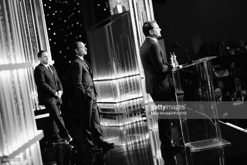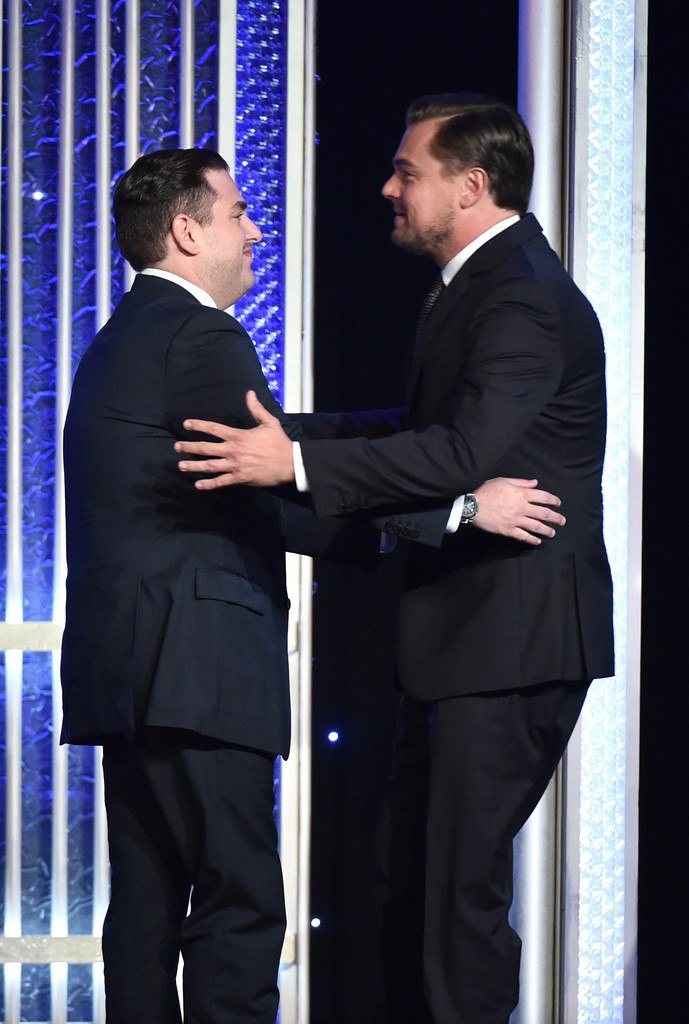Награду вручал друг и партнер Лео по фильму "Волк с Уолл-Стрит" Джона Хилл.