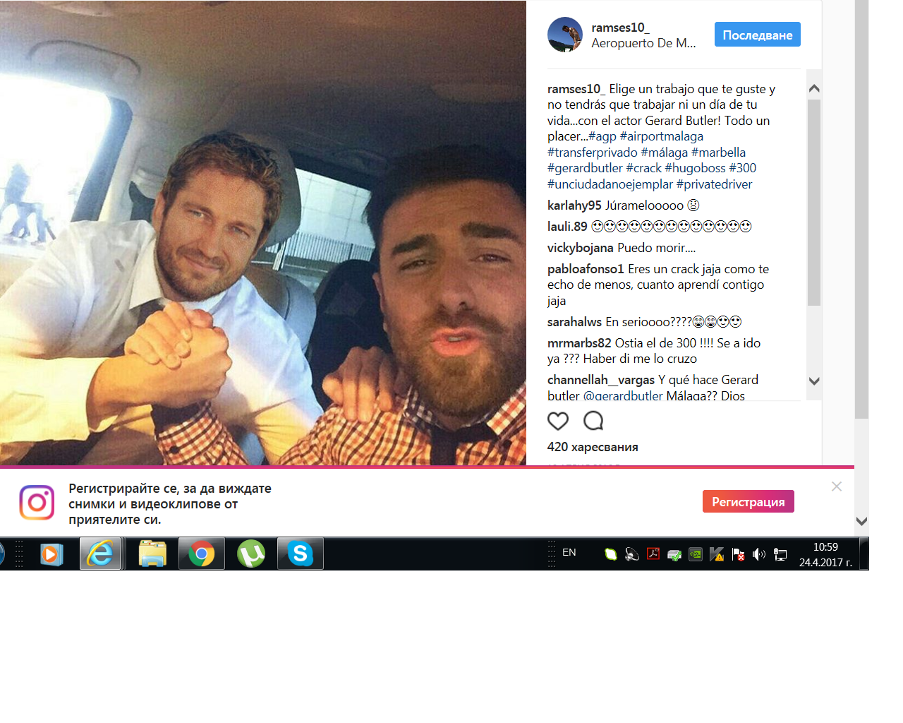 mariaartistryGerard Butler thank you for being so nice! And if you zoom in, his picture is right behind us #gerardbutler #actor #me #iphone #photooftheday #memories