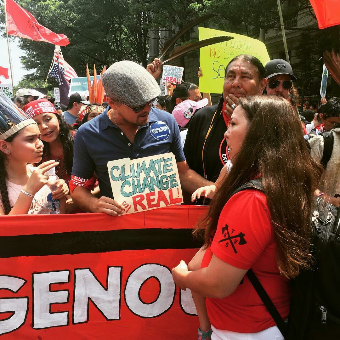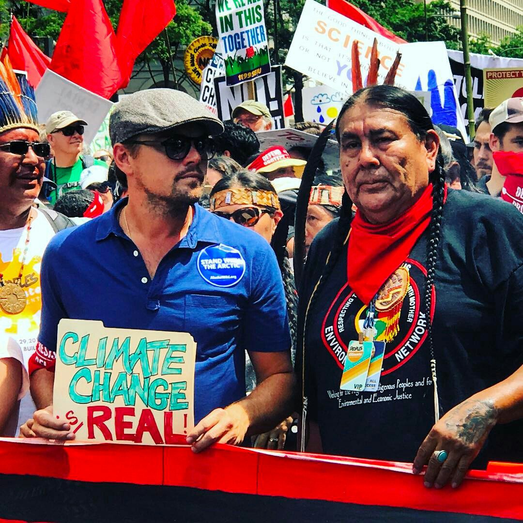 leonardodicaprio "Сегодня мы участвуем в шествии ради сохранения ископаемого топлива в земле, ради борьбы за переход на 100% чистую энергию к 2050 году, за климатическое правосудие и многое другое. Присоединяйтесь ко мне и лидерам коренных народов"