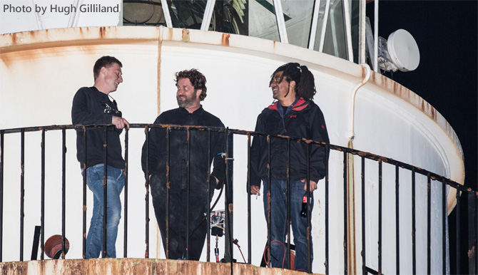 Три члена Mull of Galloway Trust — Алекс Пиблс, Морин Чанд и менеджер по маркетингу Элисон Смит были приглашены для поддержки артистов и снимались в фильме в течение двух дней на пирсе в Порт-Логане при довольно холодной погоде.