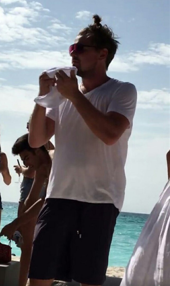 В субботу, 29 июля, мы направились в эксклюзивный рыбно-крабовый ресторан "Finolhu", который находится на песчаном берегу, практически в самом конце острова. До него можно добраться на лодке или за 20 минут ходьбы по узкой тропинке. В то время как мы выбрали лодку (это был жаркий день), Лео решил пройтись пешком. Он сел за столик позади нас вместе с командой 1OAK и своей "свитой", которая, в большинстве своем состояла из красивых моделей. Не секрет, что Лео любит быть окруженным моделями, но этот случай был просто безумным — их было ОЧЕНЬ много. Чуть позже мы даже плавали рядом с Лео в лазурных Мальдивских водах, а потом наблюдали как он играл на пляже в волейбол со своими товарищами.