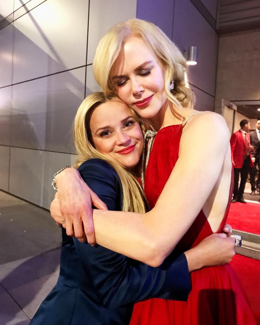 Победив в номинации «Лучшая актриса в мини-сериале или телефильме» Николь Кидман стала обладательницей первой в своей карьере премии «Эмми» за исполненную роль Селесты Райт в мини-сериале «Большая маленькая ложь.Iady in red