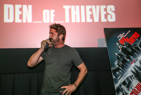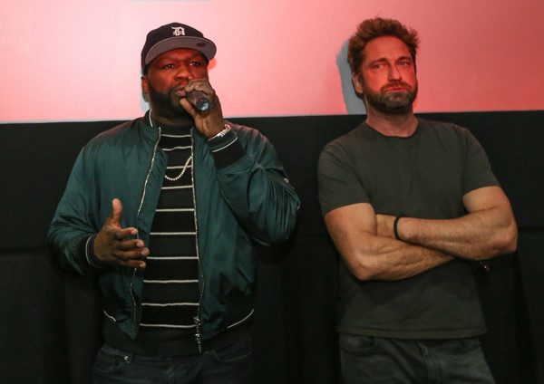 MIAMI, FL - JANUARY 10: (L-R) Curtis '50 Cent' Jackson and Gerard Butler at The Den of Thieves special screening at Regal South Beach on January 10, 2018 in Miami, Florida. 'Den Of Thieves' Private Screening