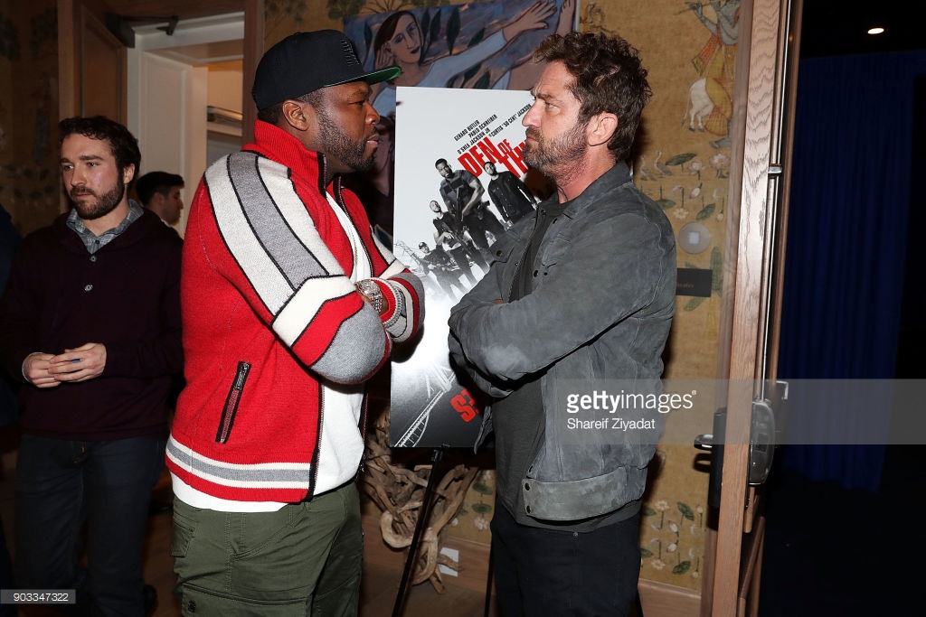 NEW YORK, NY - JANUARY 09: Curtis '50 Cent' Jackson and Gerard Butler attends 'Den Of Thieves' Private Screening at the Whitby Hotel on January 9, 2018 in New York City.