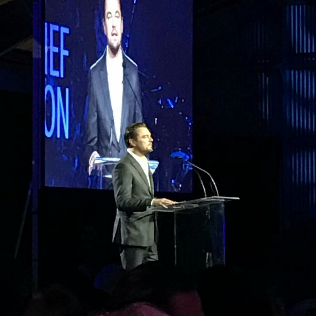 На ужине Леонардо выступил с благодарственной речью, в которой говорил в том числе и о климатических изменениях в мире.