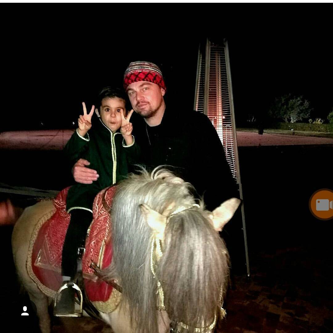 15 января, Леонардо фотографируется с ребенком и белой лошадкой в 5-звездочном отеле Selman Marrakech (BP 24 530 Marrakech Atlas, KM 5, route d’Amizmiz, 40000 Марракеш, Марокко)
