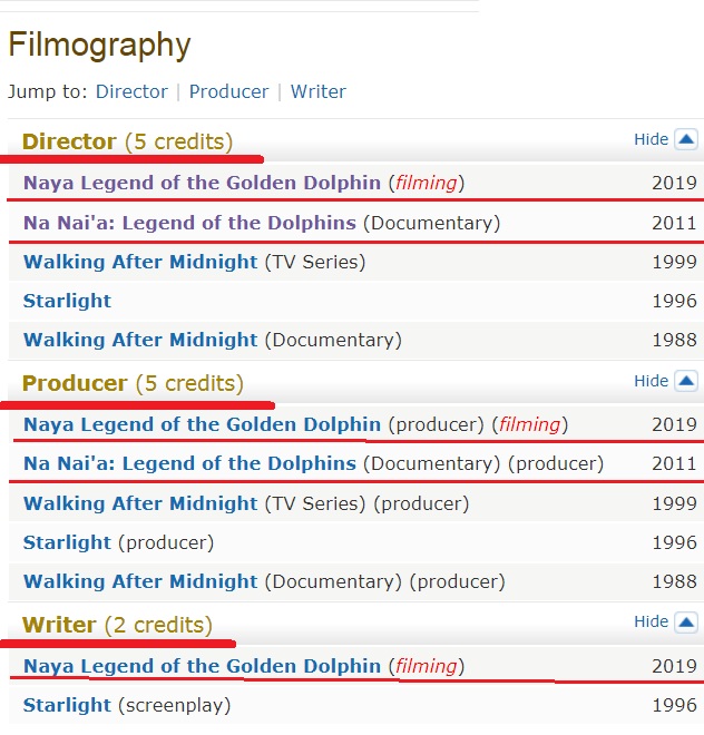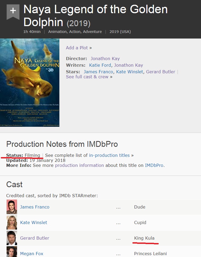 Кей, который живет в Captain Cook, является режиссером и продюсером фильма «Ная: легенда о золотом дельфине», авантюрный рассказ о дельфине, которому было поручено спасти свое королевство.