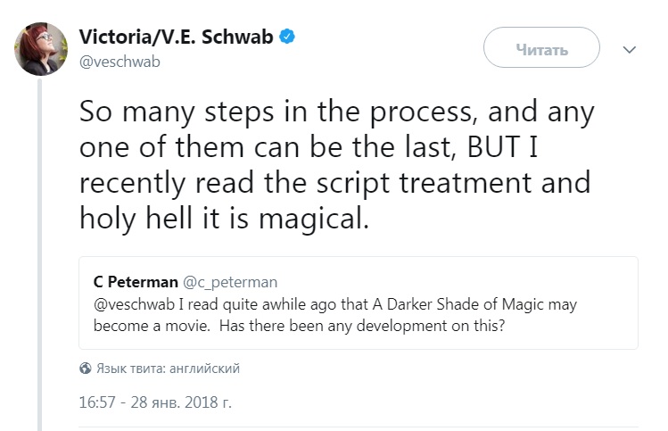 Поговаривают также, что фильммейкеры, желающие экранизировать произведение Шваб, уже выстраиваются в очередь.