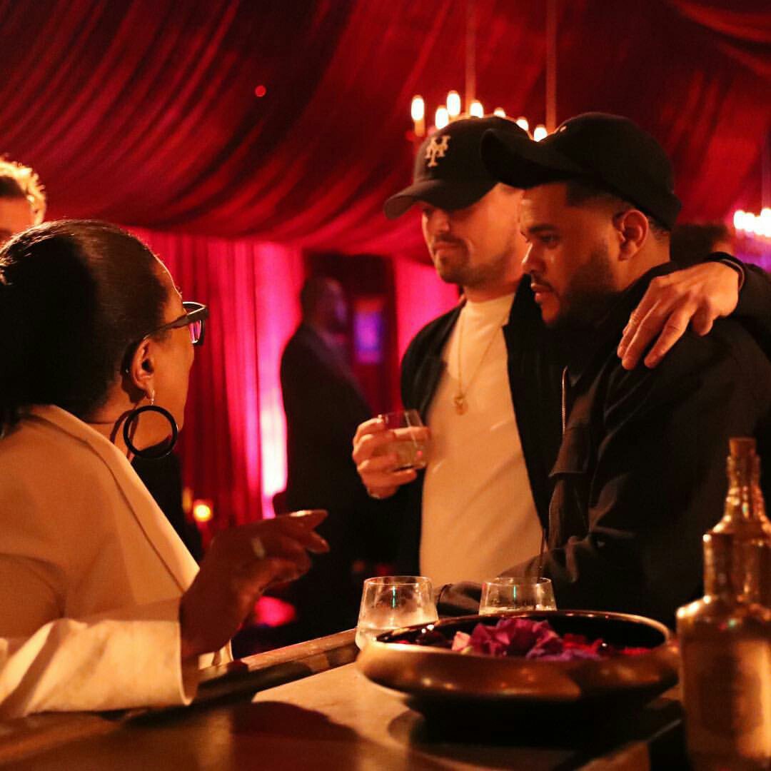 https://www.instagram.com/leoandhismodels/ Лео в компании певца The Weeknd разговаривают с Опрoй Уинфри Короткое видео с вечеринке на котором на 00:20 минуте можно увидеть танцующего Леонардо)https://www.instagram.com/leowdfan2/