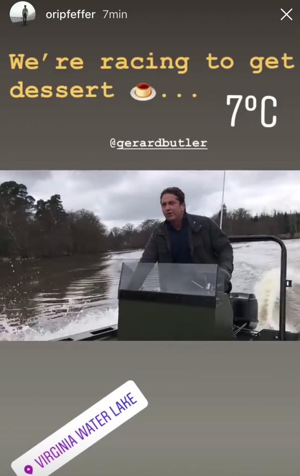Gerard Butler Films 'Angel Has Fallen' on a Lake in London