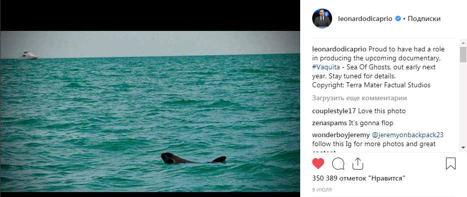 leonardodicaprio Горжусь продюсированием предстоящего документального фильма # Вакита - Мoре призраков, который выйдет в начале следующего года. Оставайтесь на связи, чтобы узнать детали.