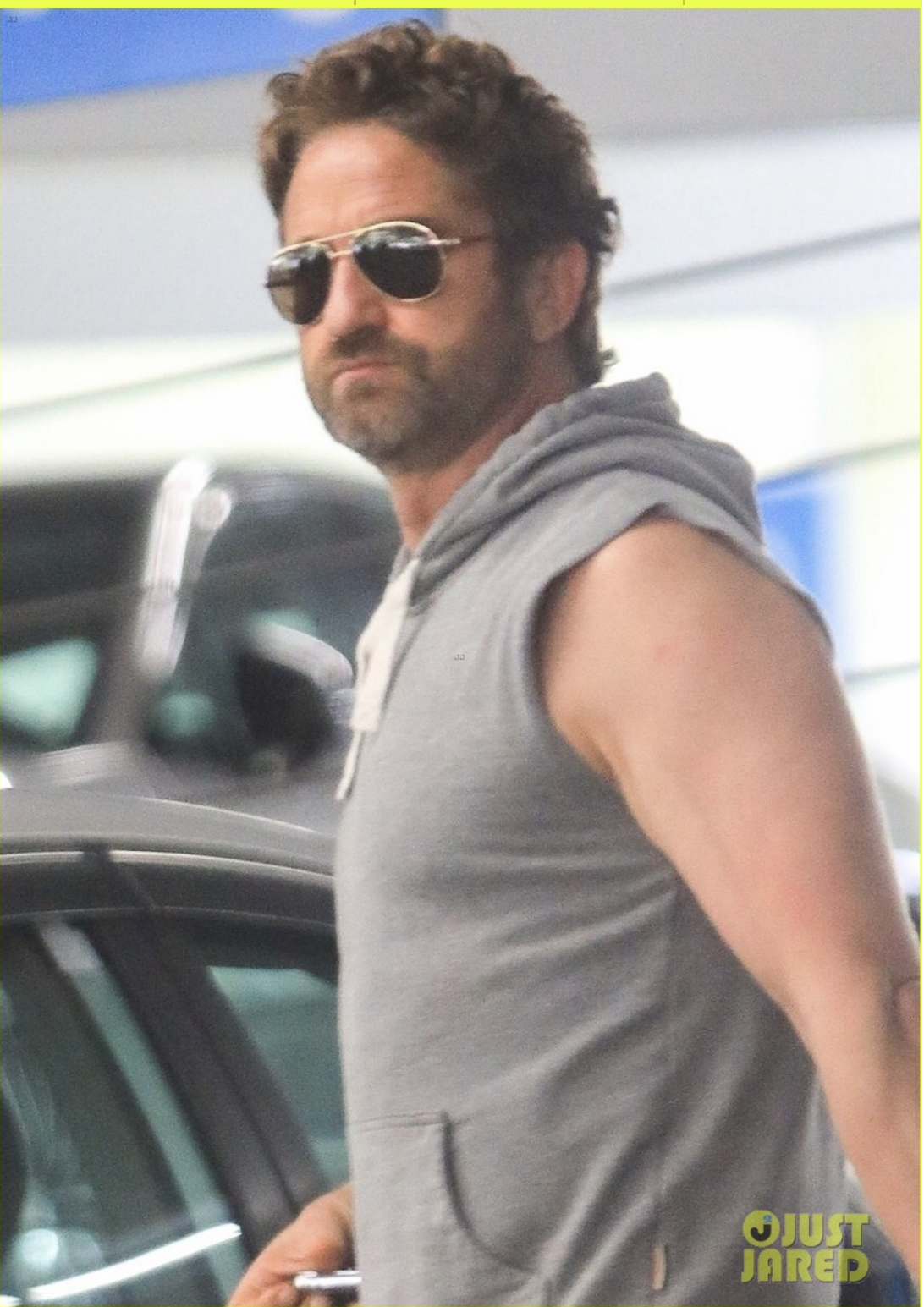 Джерард Батлер доставляет подозрительную посылку, снимая сцены для нового фильма «Снежные пони»