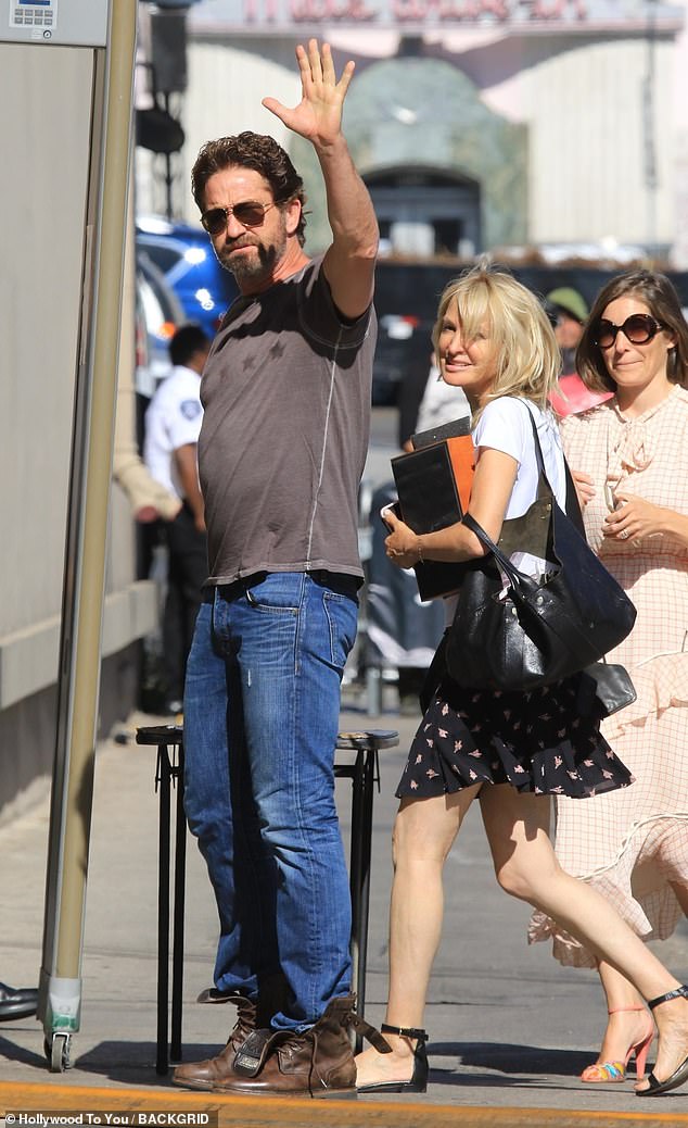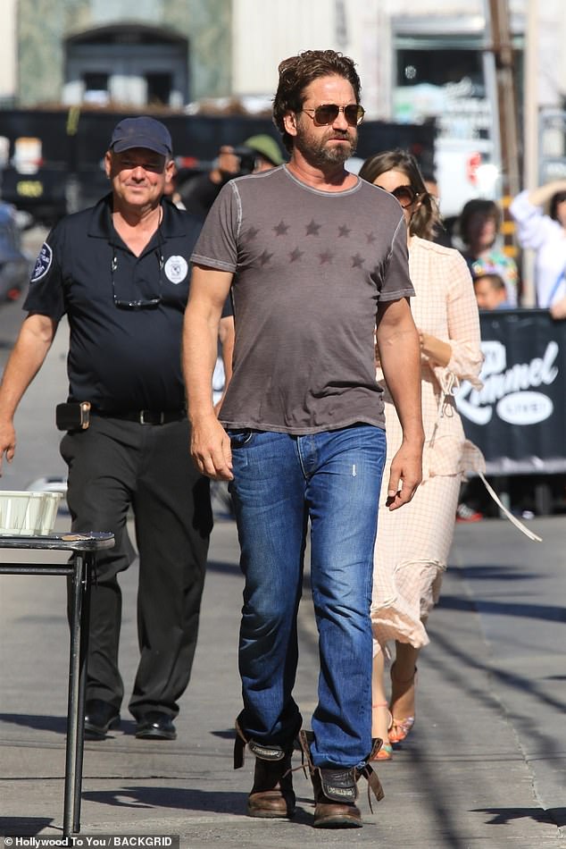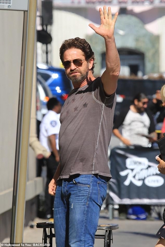 Джерард Батлер получил теплый прием, когда он прибыл в развлекательный центр El Capitan в Голливуде для появления на Jimmy Kimmel Live! в четверг.