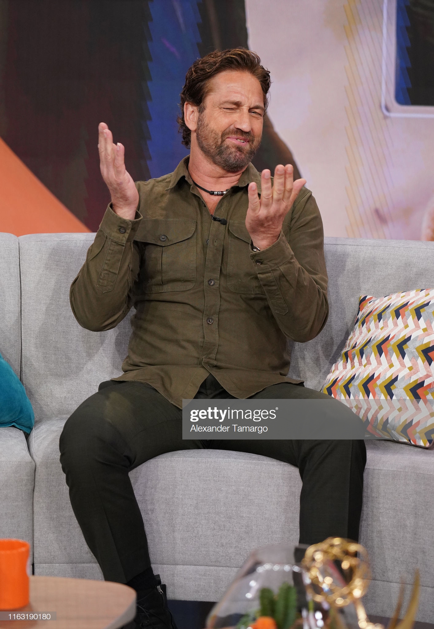 MIAMI, FL - AUGUST 22: Gerard Butler on the set of Despierta America at Univision Studios to promote the film "Angel Has Fallen" on August 22, 2019 in Miami, Florida.