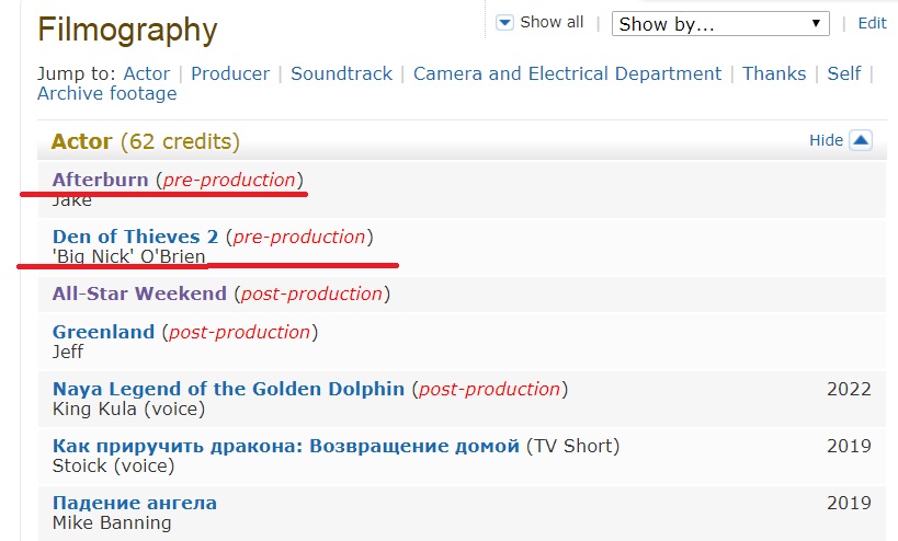 Да, может и The Plane, там съемки вроде были запланированы на 2 квартал 2020.