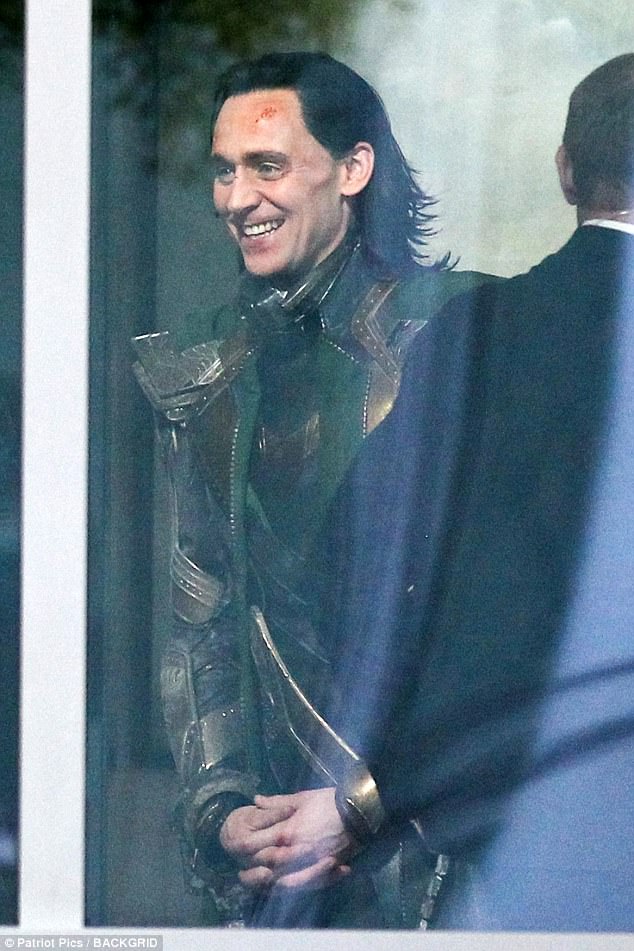 Chris Hemsworth and Tom Hiddleston share a giggle in their costumes as they film Avengers 4 in Atlanta
