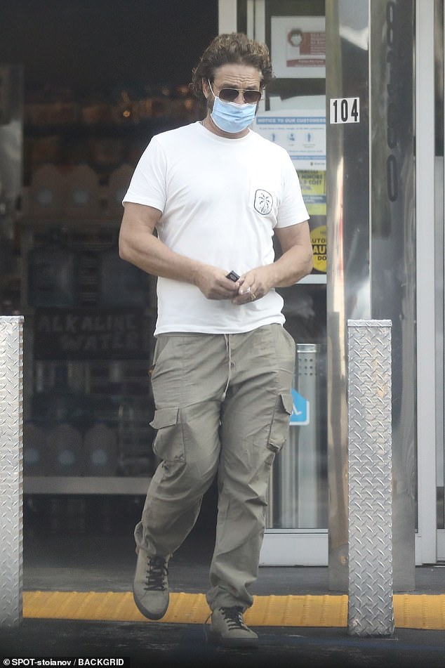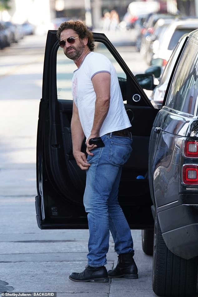 А в понедельник Джерард Батлер отправился по своим личным делам в Лос-Анджелес.