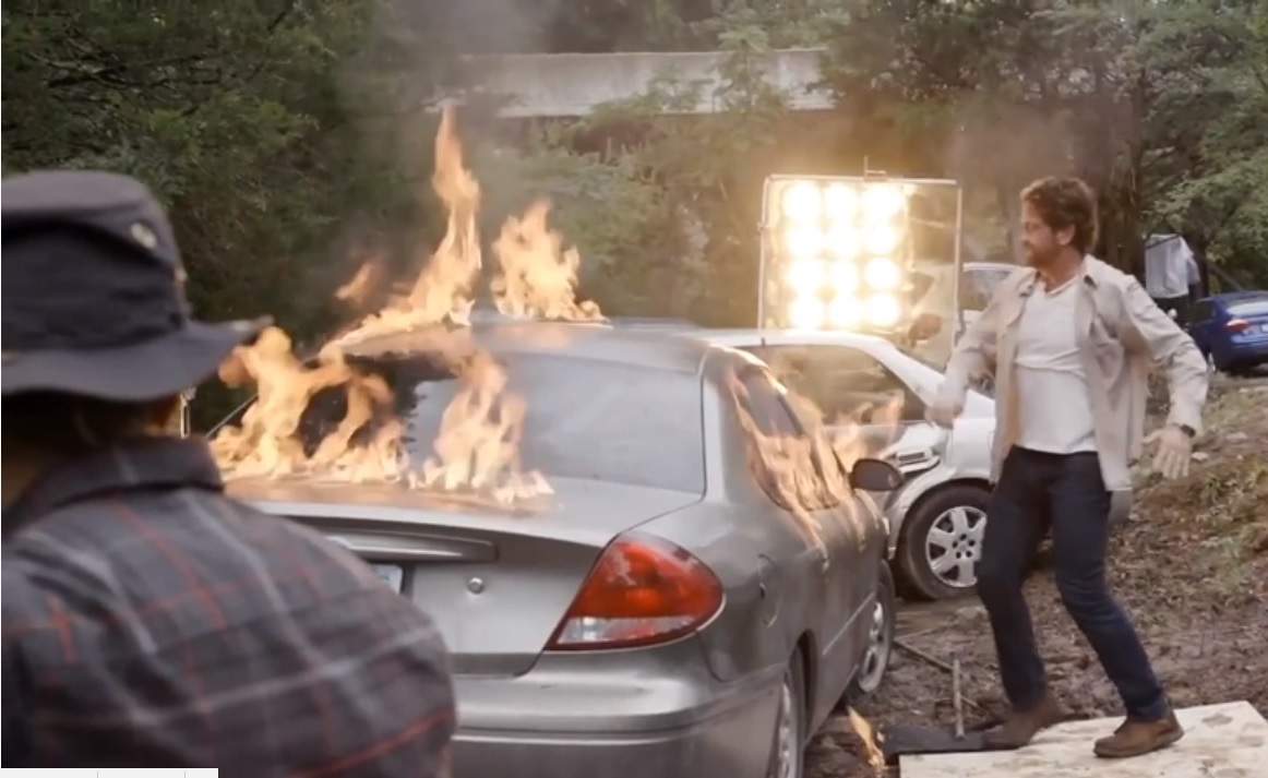 В Атланте был дождливый день, и из отеля нас отвезли на одну из жилых улиц города. Там мы стали свидетелями съемок некоторых сцен, которые Режиссер Рик Роман Во, бывший каскадер, считает самыми сложными для себя: семейная жизнь между Джоном, Эллисон и их маленьким сыном Натаном. “Я предпочитаю взрывать вещи (смеется), потому что быть между двумя людьми-это очень интимный момент, а иметь команду вокруг очень сложно, но мне очень повезло, что у меня невероятный актерский состав, химия между Джерардом и Мореной была фантастической” .