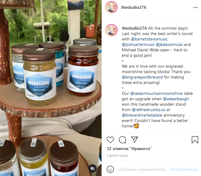 Фото из города Cedar Mountain в округе Трансильвания, штат Северная Каролина, США. Лес, природа, арт судия Studio276, выступления музыкантов, кофе, пончики и дегустация самогона в смешных баночках. :)
