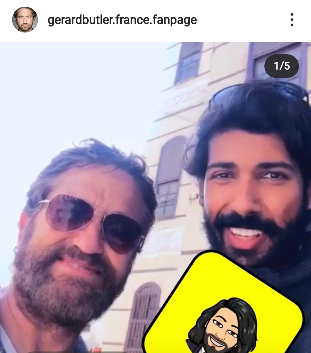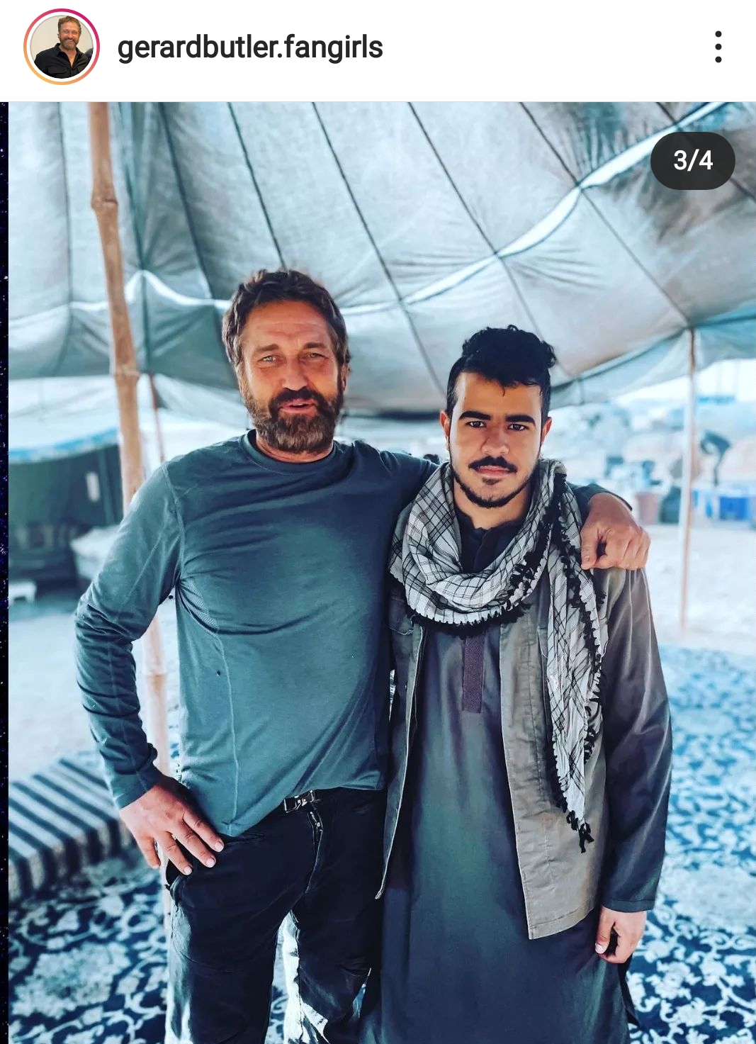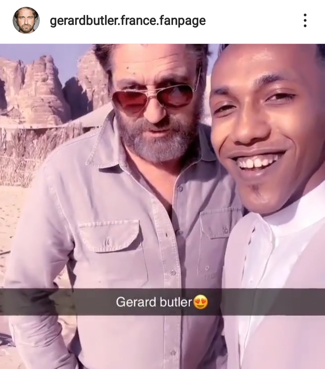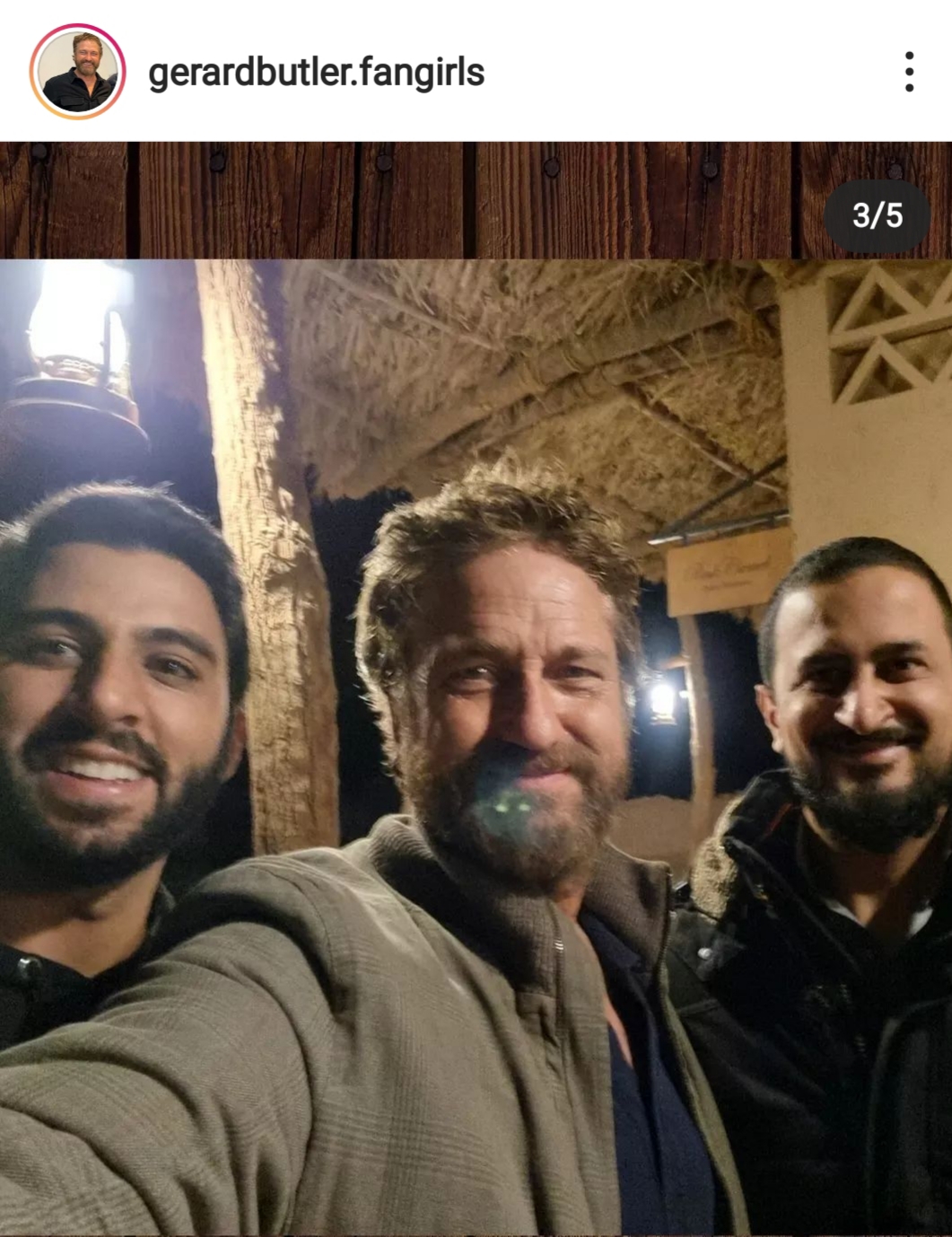 "@emraning Какой момент с легендой✨Красивый простой и скромный, это знаменитый актер Жерард Батлер в двух словах, спонтанный снимок со мной и моей женой во время его пребывания в течение последних 2 месяцев, снимая «Кандагар» в Алале #hollywood