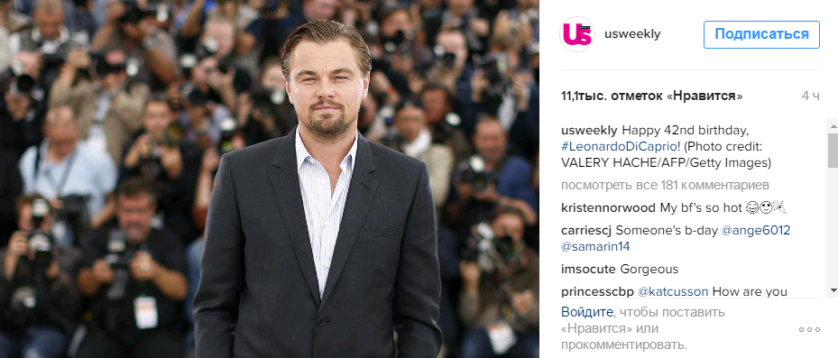 Журнал Us Weekly http://www.usmagazine.com/ на своей странице https://www.instagram.com/usweekly/ usweekly: "Счатливого 42-го Дня Рождения,#LeonardoDiCaprio!"