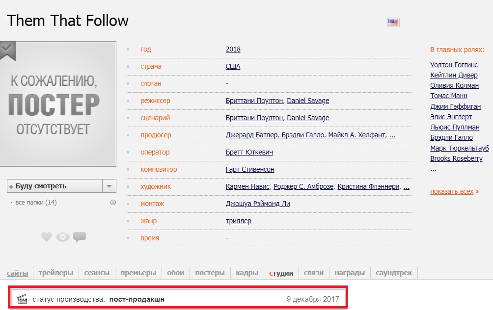 Фильм находится в стадии пост-продакшн с 9 декабря 2017