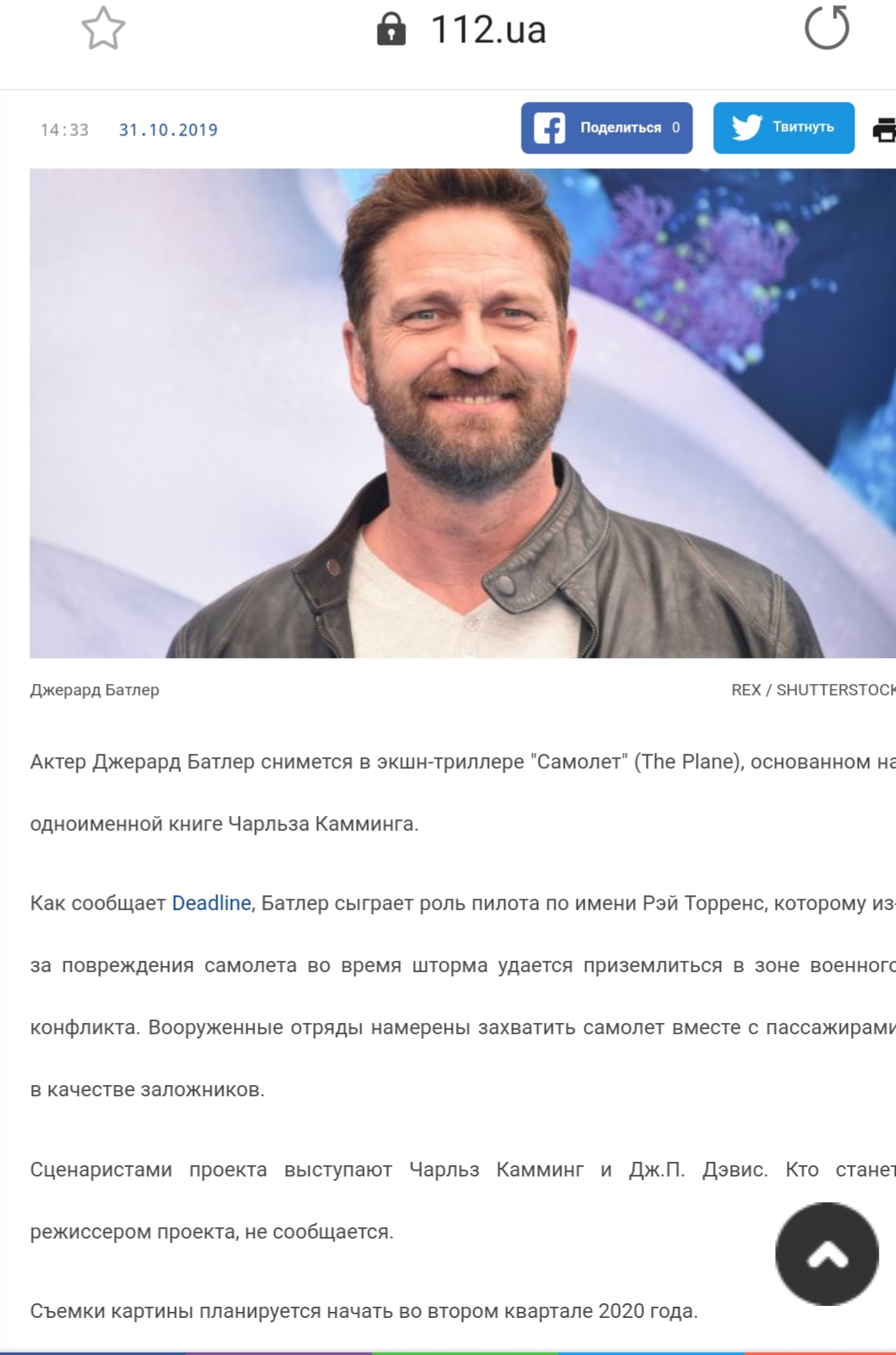 Джерард Батлер вошел в кофейню Bearsden сегодня днем