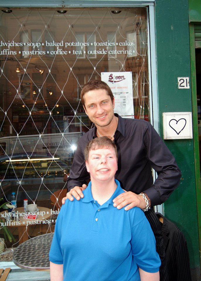 Мистер Батлер , находясь в Глазго в 2005 году в июле месяце для участия в Bowmore Scottish Screen Awards , посетил это кафе. И как написали ребята на своей страничке в фейсбуке, стал патроном этого заведения. Не знаю в чём это выразилось буквально и материально, и продолжает ли Джерр поддерживать это заведение сейчас, но на память об этом событии сохранились прекрасные фотографии. (Когда-то ссылку на публикацию этих фото давала ОКей.)