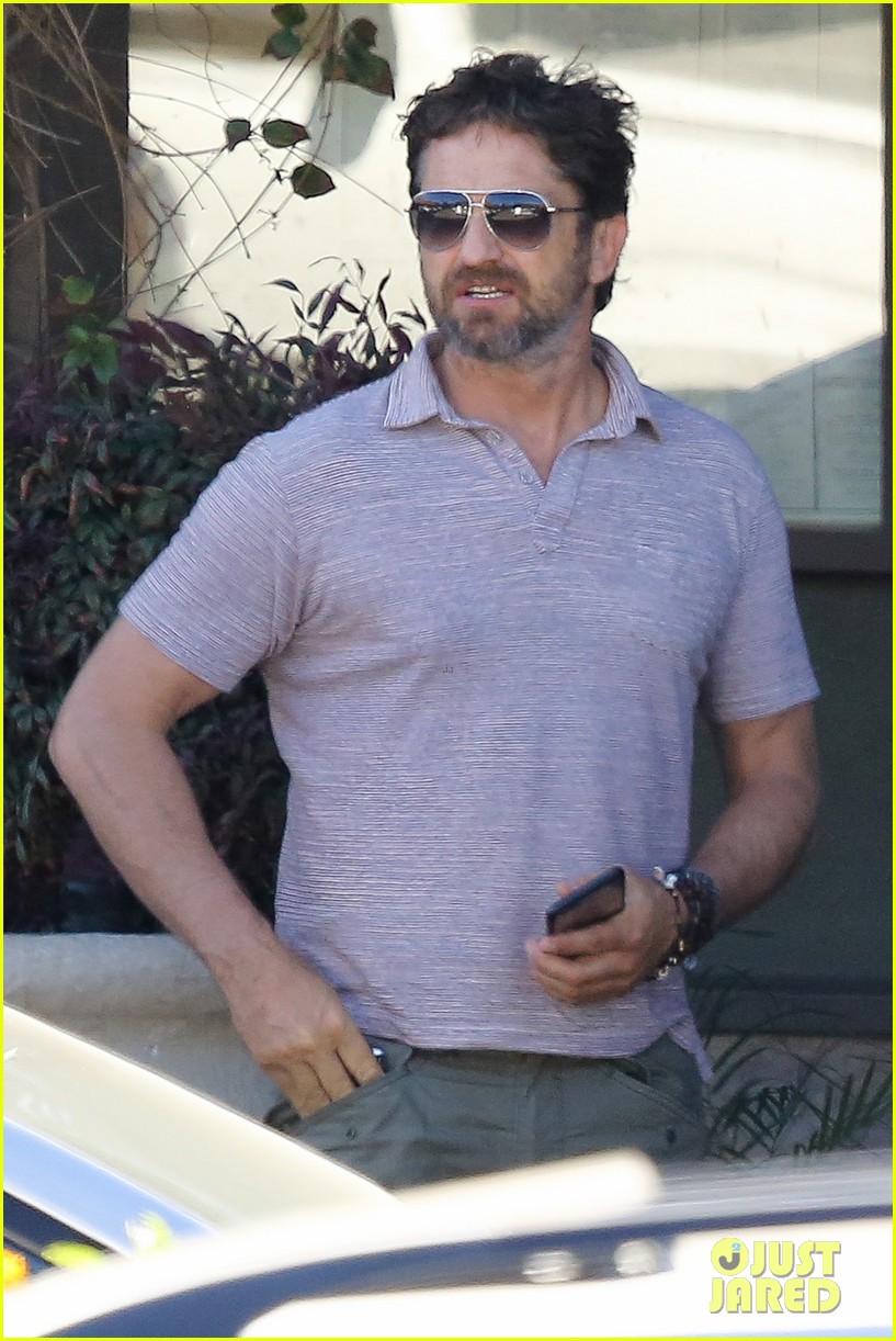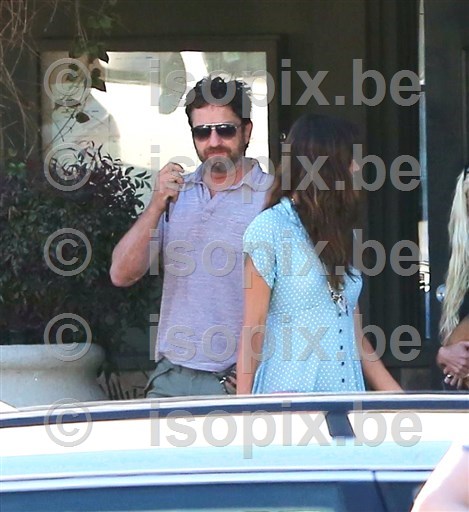 Malibu, CA - Gerard Butler and his date arrive at a pre-4th of July dinner party at Nobu in Malibu. The '300' star dressed casual in a long sleeve grey shirt and jeans. AKM-GSI July 3, 2016