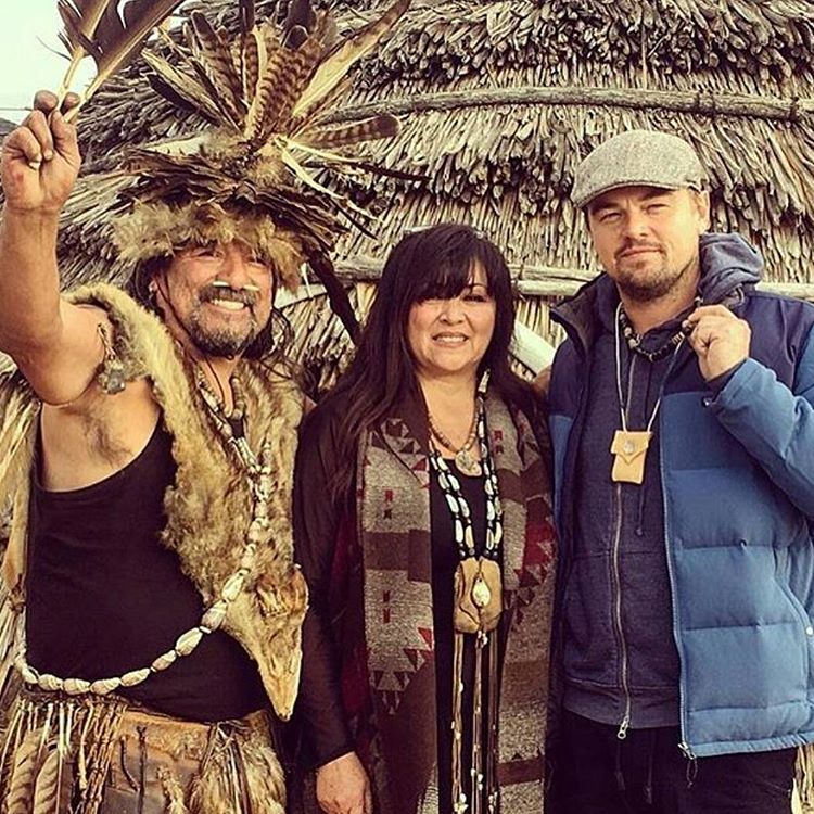Леонардо со старейшиной деревни Wishtoyo Chumash Мати Вайя и его женой Luhue принимает участие в "Winter Solstence Ceremony".