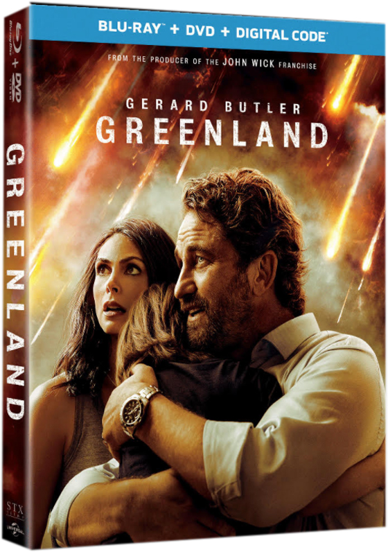 Гренландия с 9 февраля выходит на блю-рей™( оптических дисках), DVD и Digitalcomes с новыми бонусами, включая удаленные сцены со вступлениями от режиссера и захватывающий короткометражный фильм с Джерардом Батлером, Мореной Баккарин, которые ведут зрителей а кулисы съемок адреналинового сюжета.