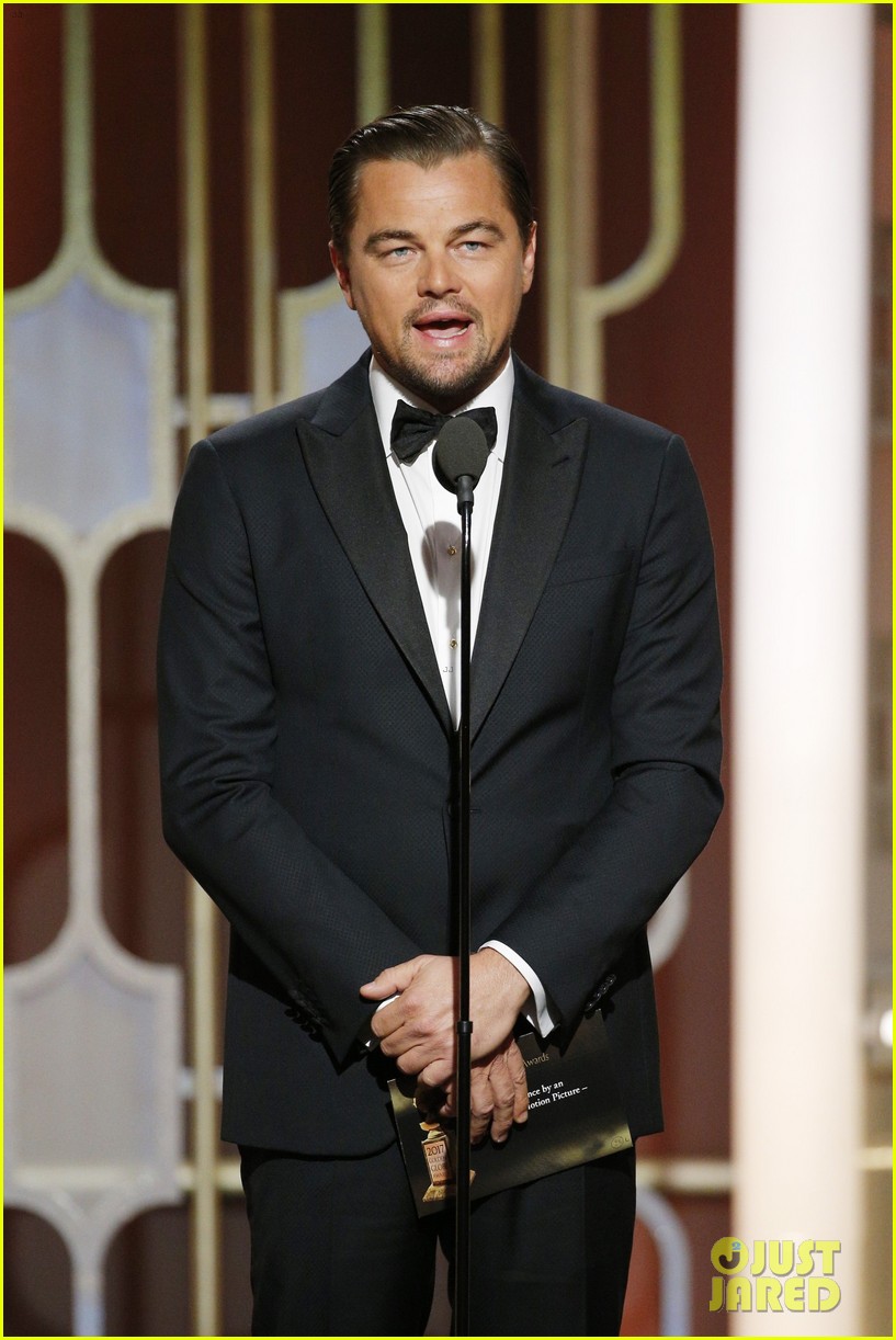 На правах прошлогоднего победителя в номинации «Лучший драматический актёр», Лео вручил статуэтку "Золотой глобус" актрисе Изабель Юппер, которая победила в номинации "Лучшая драматическая актриса" (за фильм "Она").