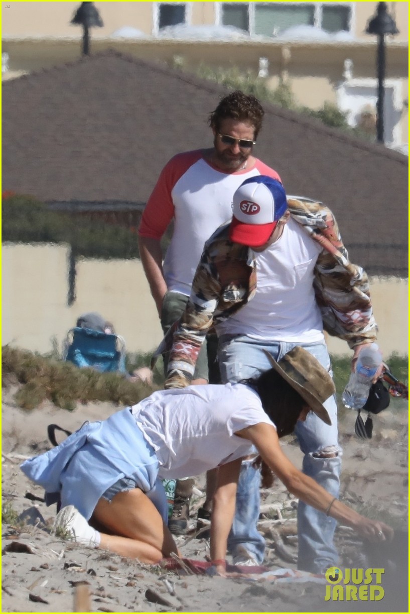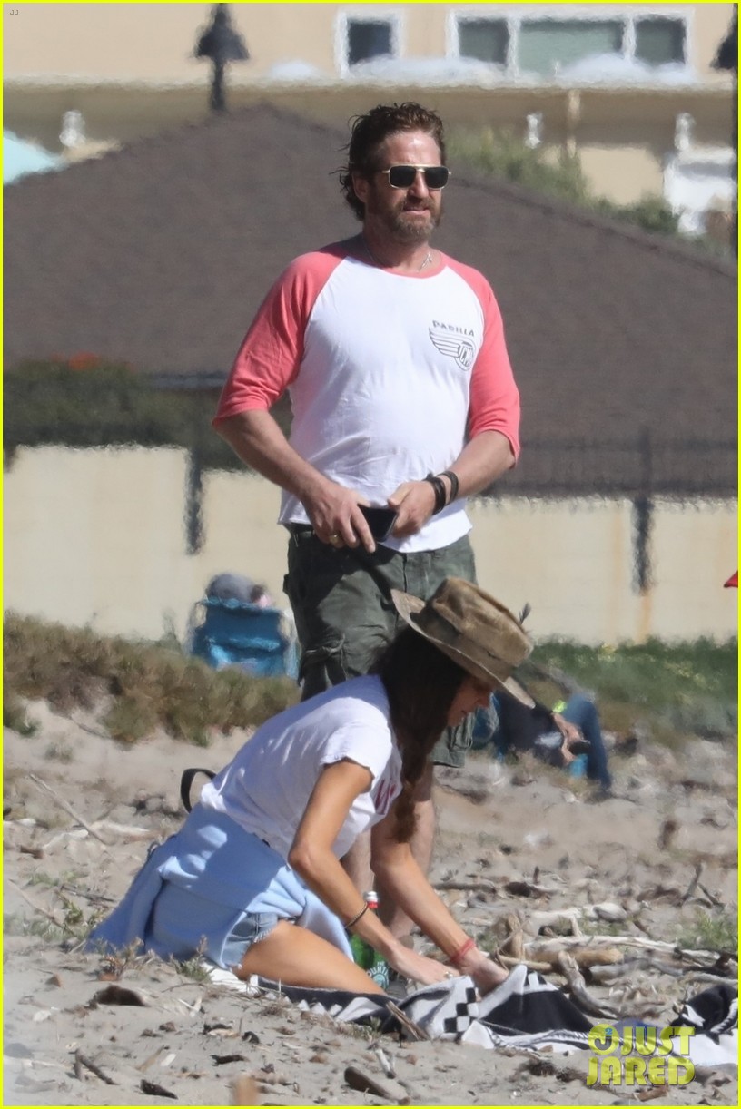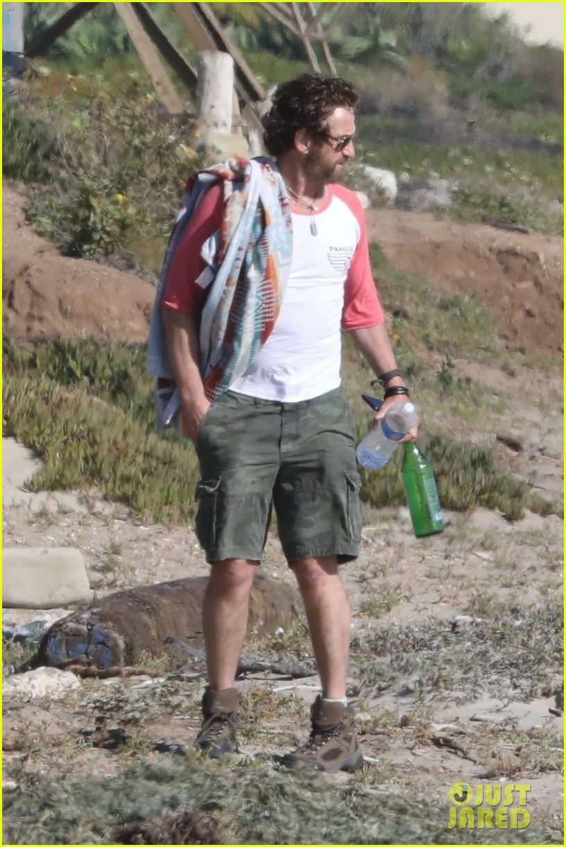 Джерард Батлер получает некоторое время отдыха на пляже с подругой Морган Браун в понедельник днем (30 марта) в Малибу, штат Калифорния.