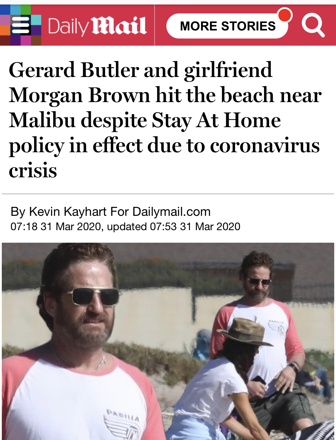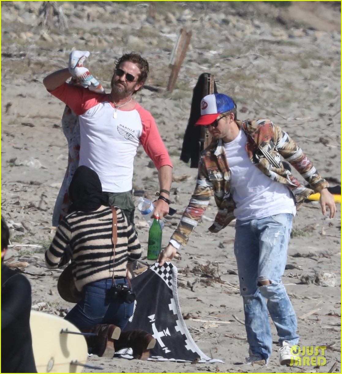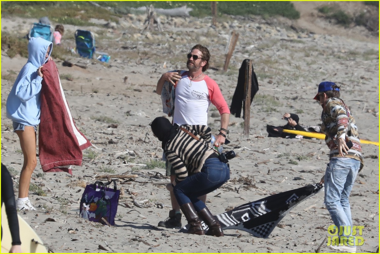 Джерард Батлер получает некоторое время отдыха на пляже с подругой Морган Браун в понедельник днем (30 марта) в Малибу, штат Калифорния.