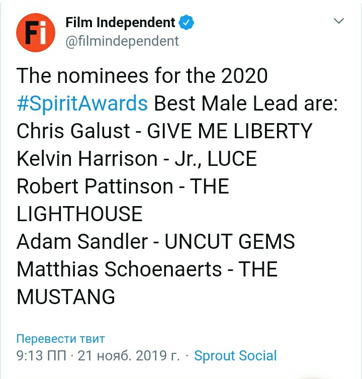 Маттиас Шонартс с фильмом "Мустанг" в числе претендентов на премию "Независимый дух" 2020 в номинации "Лучшая главная мужская роль".