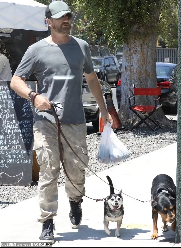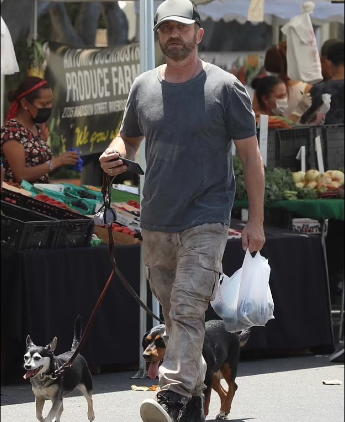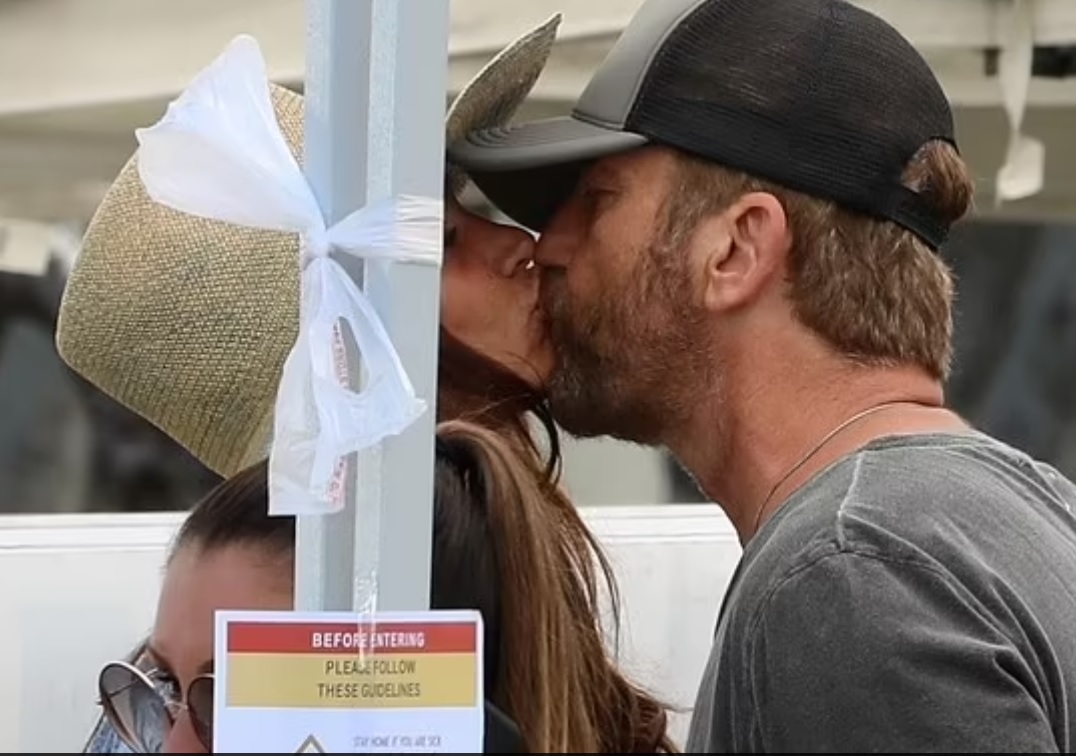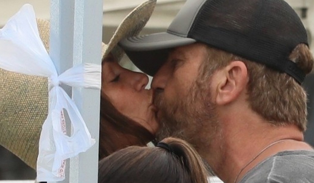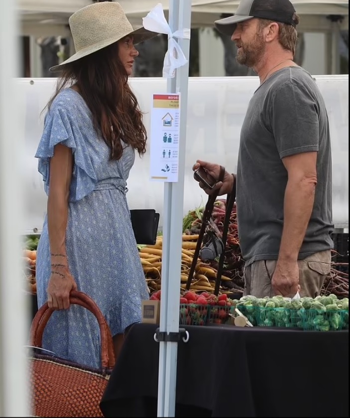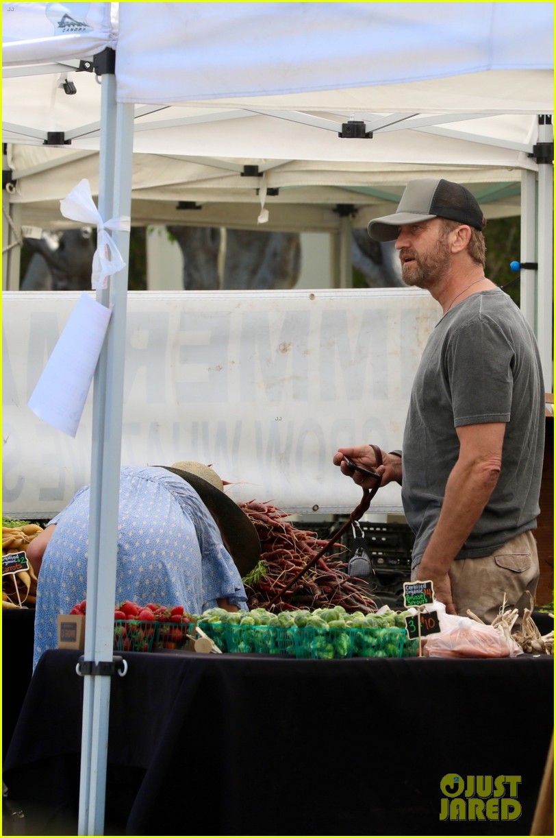 Джерард Батлер запечатлел поцелуй на своей девушке, Морган Браун, когда они вдвоем шли по фермерскому рынку в Лос-Анджелесе в воскресенье днем.