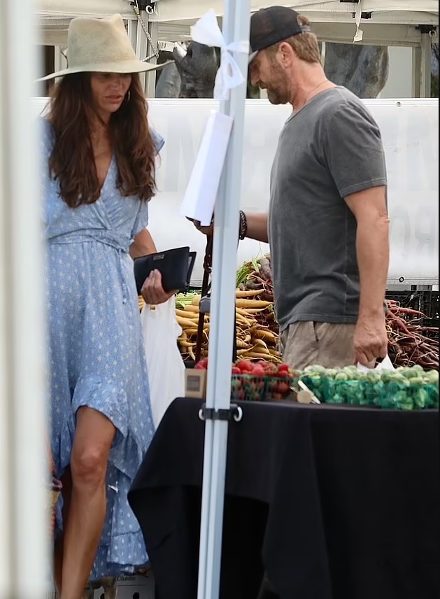 Джерард Батлер целует свою подругу Морган Браун, делая покупки на фермерском рынке в Лос-Анджелесе